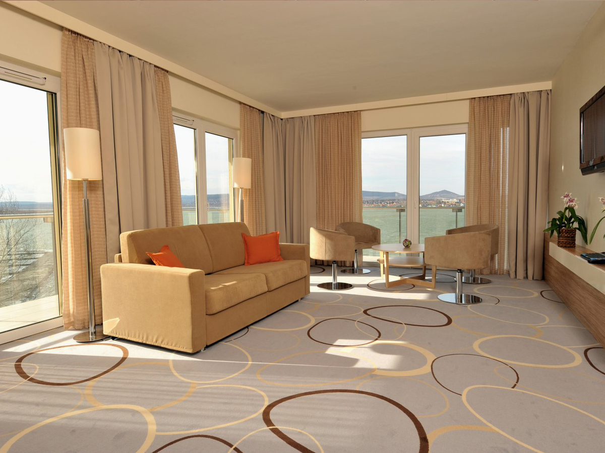 Hazai  terepen jártunk a Velencei-tó partján épült szállodai épületkomplexum, a Hotel Velence Resort & Spa**** teljes belsőépítészeti tervezési és kivitelezési munkálatai során. A neves magyar belsőépítész által megálmodott ötletes terek megvalósítása új dimenziókat nyitott számunkra a szállodai bútorozásban.